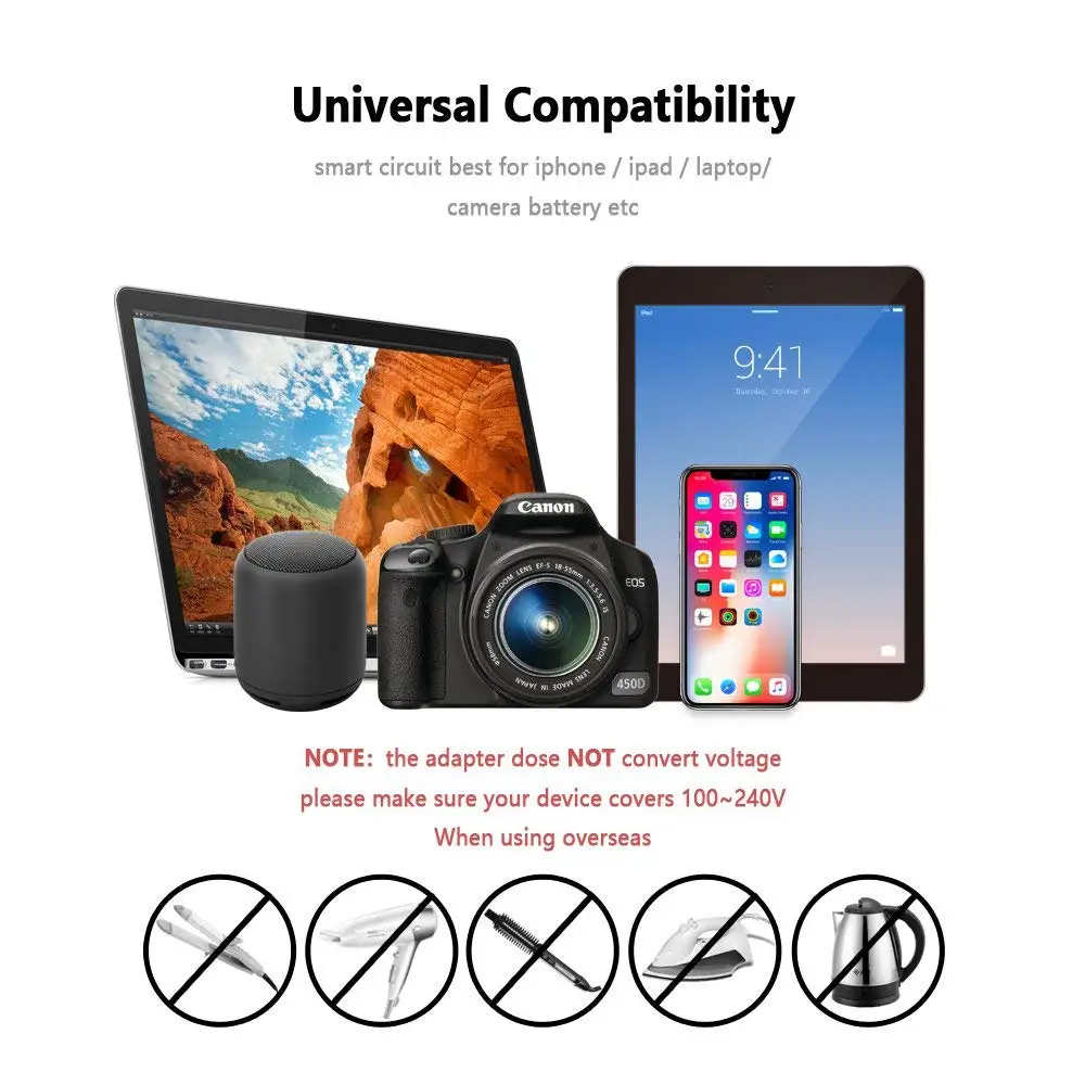 Умная зарядка через USB: Максимальная Совместимость с подключенными устройствами, устройствами Android, Apple series, Kindle.