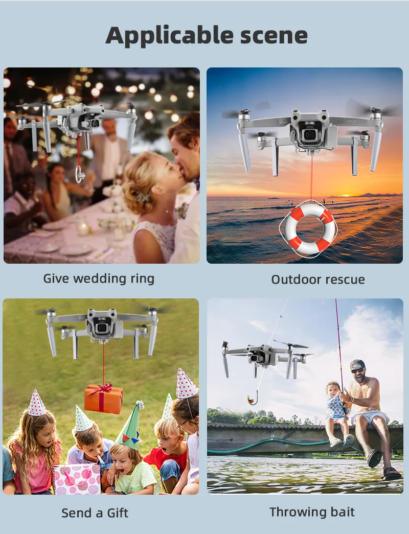 2. Может быть доставлен удаленно, для рекламы, заброса рыболовной приманки, бросания подарков, доставки еды, доставки обручальных колец и т. Д.,