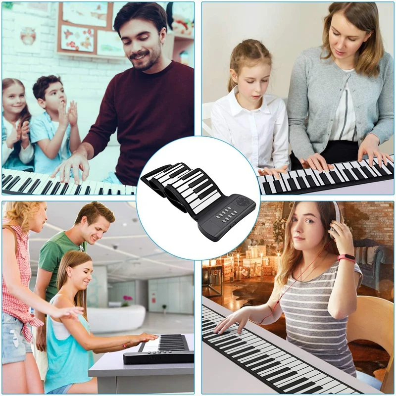 Высокое качество: этот стандарт 61 клавиша свернута фортепиано Сделано высокого качества с экологической силиконовой клавиатурой, износостойкая, мягкая и прочная. Звук очень четкий, яркий звук, который заставляет вас чувствовать себя так же, как реальное пианино. Идеально подходит для возраста 3 лет и старше.