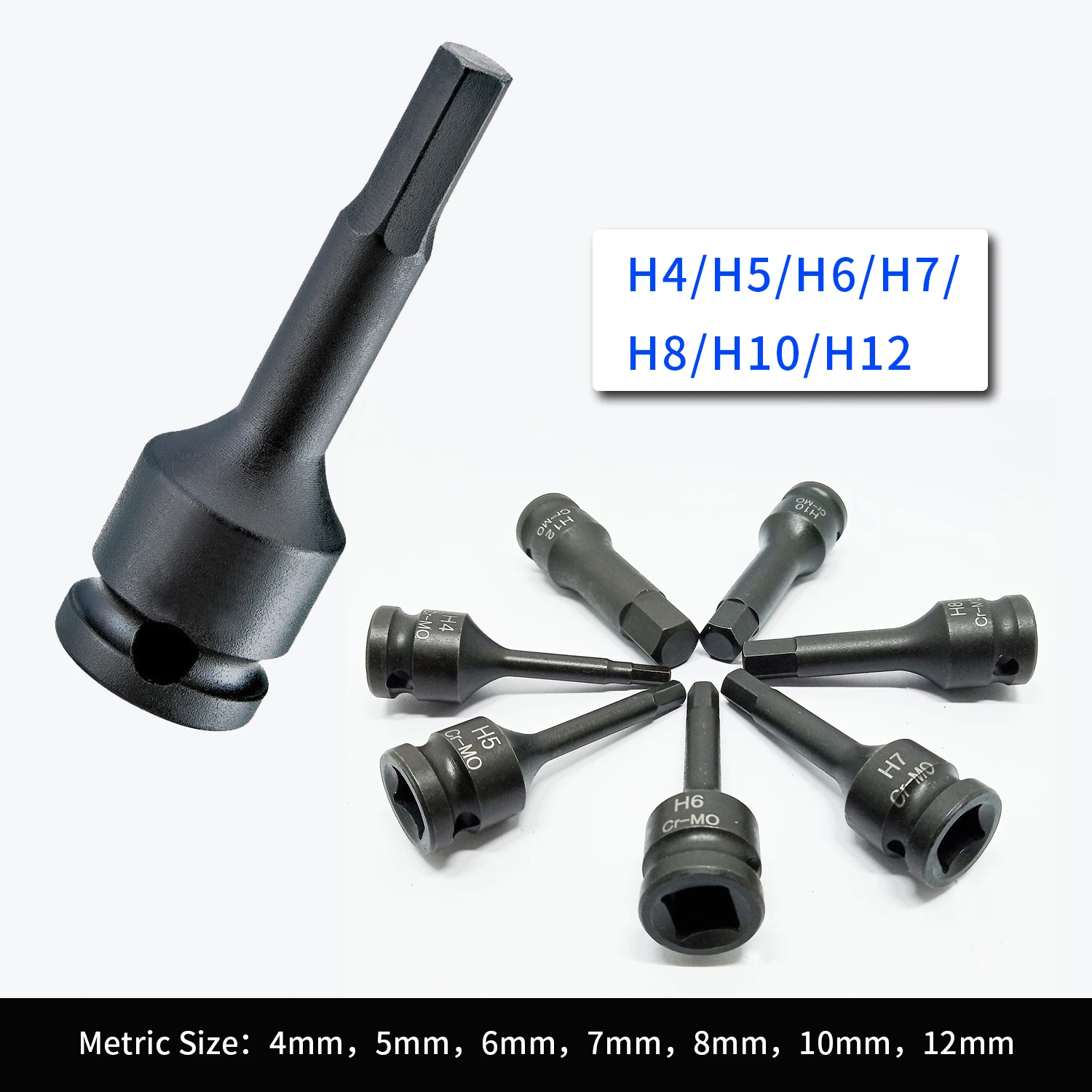 Наиболее часто используемым размеры соответствуют стандартам включен -- набор включает в себя 1/2 дюймовый накопитель с большим вращающим моментом ударные головки (метрическая): 10 мм, 12 мм, 13 мм, 14 мм, 15 мм, 16 мм, 17 мм, 19 мм, 22 мм, 24 мм и длиной 80 мм.