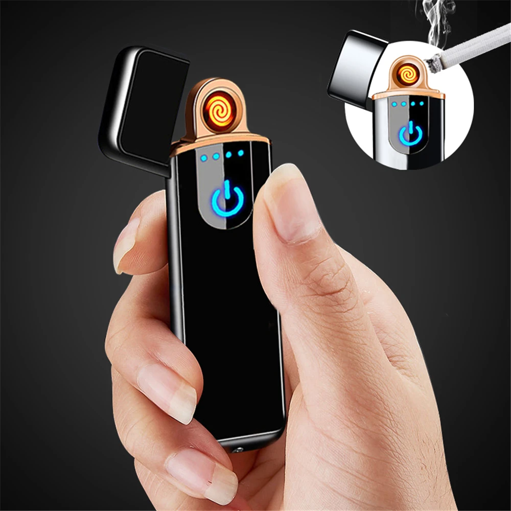 Электрическая двухдуговая зажигалка с зарядкой от USB, беспламенные Плазменные ветрозащитные, импульсные зажигалки с светодиодный дисплеем, подарок для мужчин