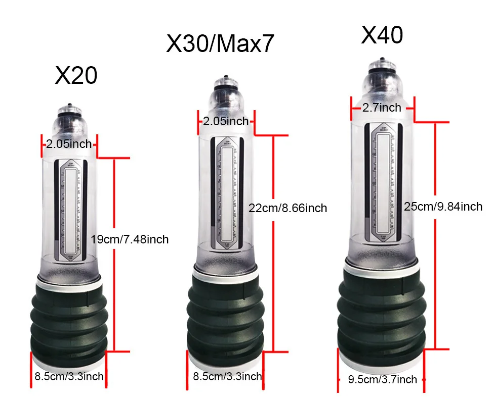X20 насос: 1,96 дюйма * 7,48 дюйма (подходит для эрекции полового члена длиной менее 15 см)