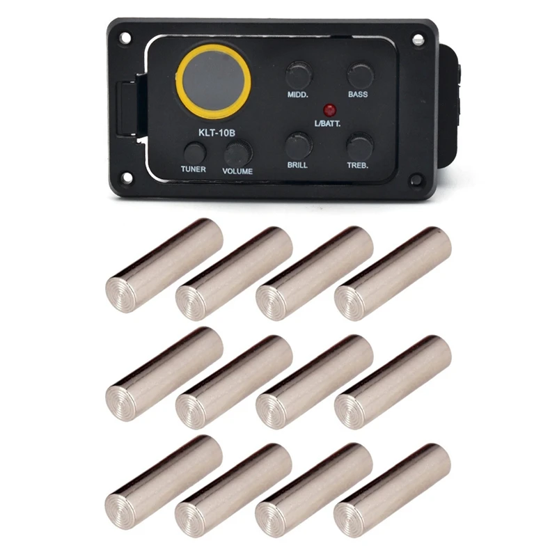 12 шт. пикап полюс клейкая изоляционная лента металлические штифты магнит клейкая изоляционная лента стержни 18 мм и 1 комплект KLT-10B 4 полосным эквалайзером эквалайзер предусилитель для гитары пикап