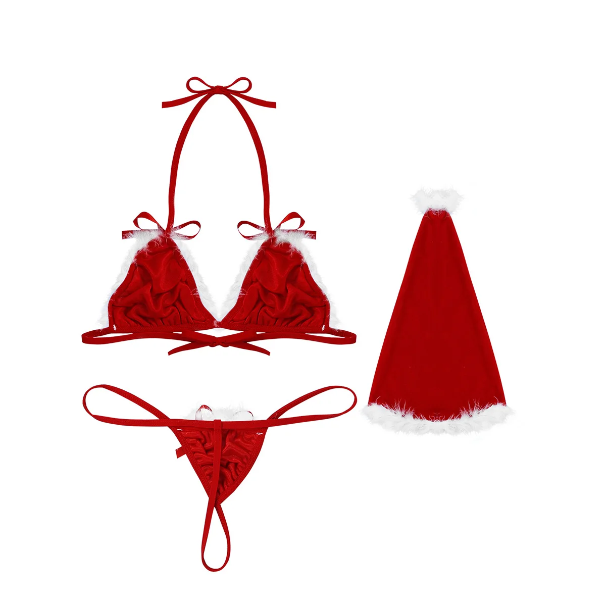3 шт Женский мягкий бархатный Рождественский костюм, комплект нижнего белья, горячая и очаровательная, один размер подходит для большинства.