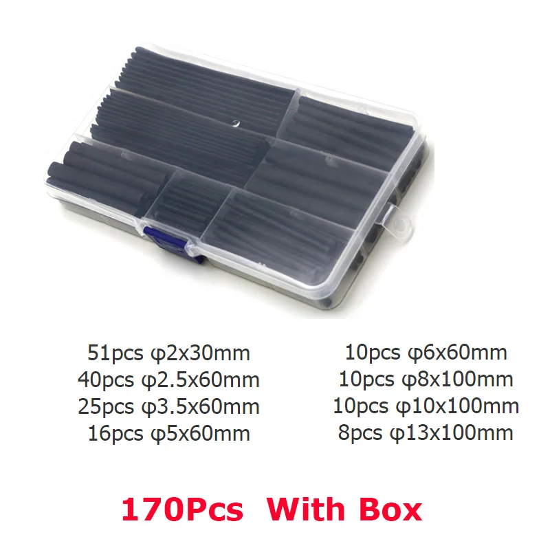 Big collection of heat shrink tubing,7 Specifications,2 colors.
