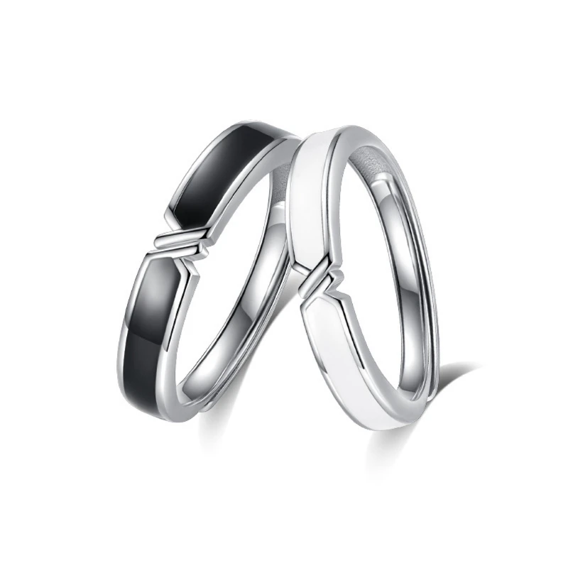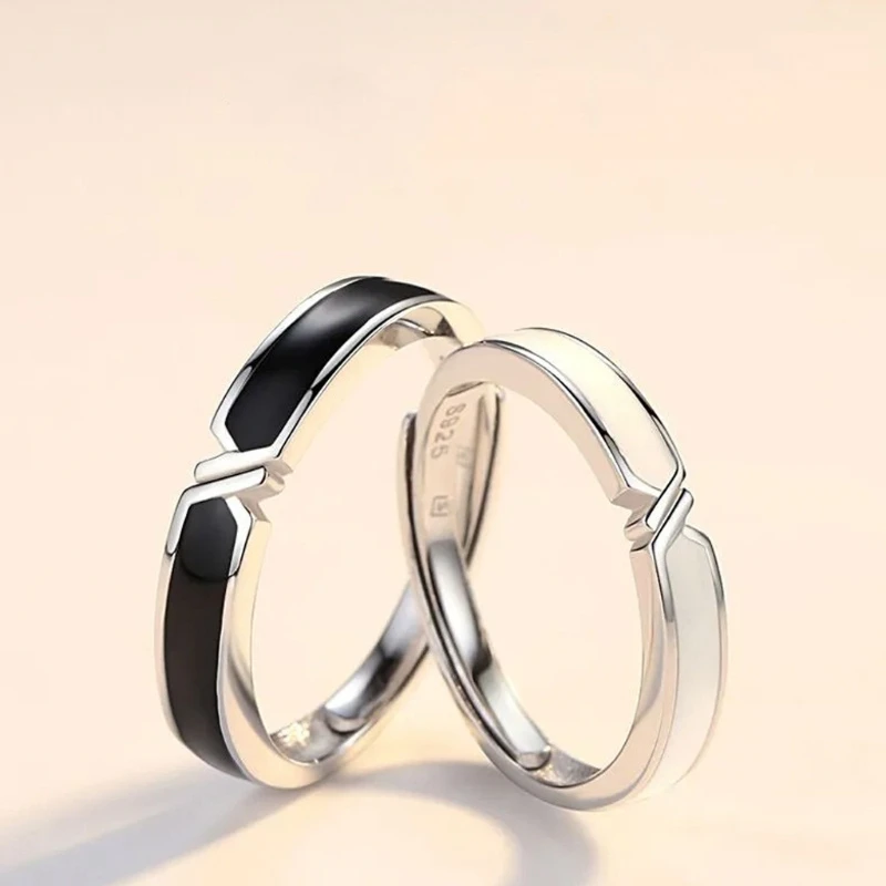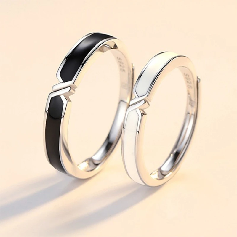 Комплект из 2 предметов, черно-белые кольца с узлом для влюбленных, кольца для пар, обручальные кольца, регулируемые для него и для нее