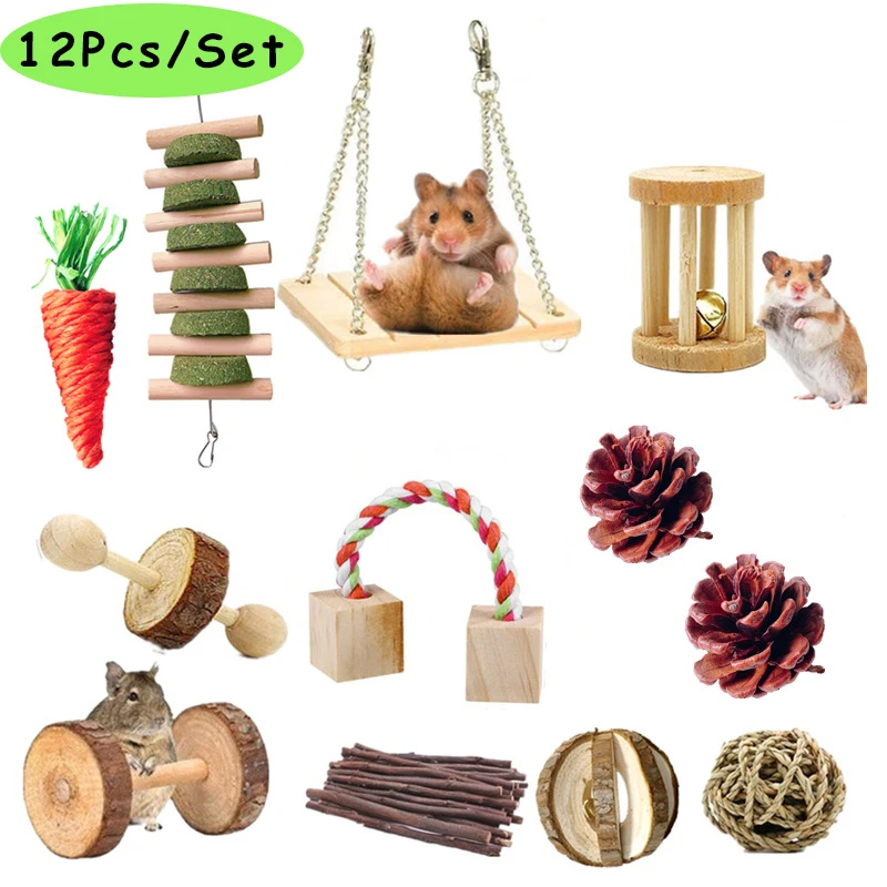 12 шт./компл., игрушки для хомяков, деревянная игрушка для жевания, набор для маленьких животных, игрушка для альпинизма, сделай сам, аксессуары для клетки хомяка