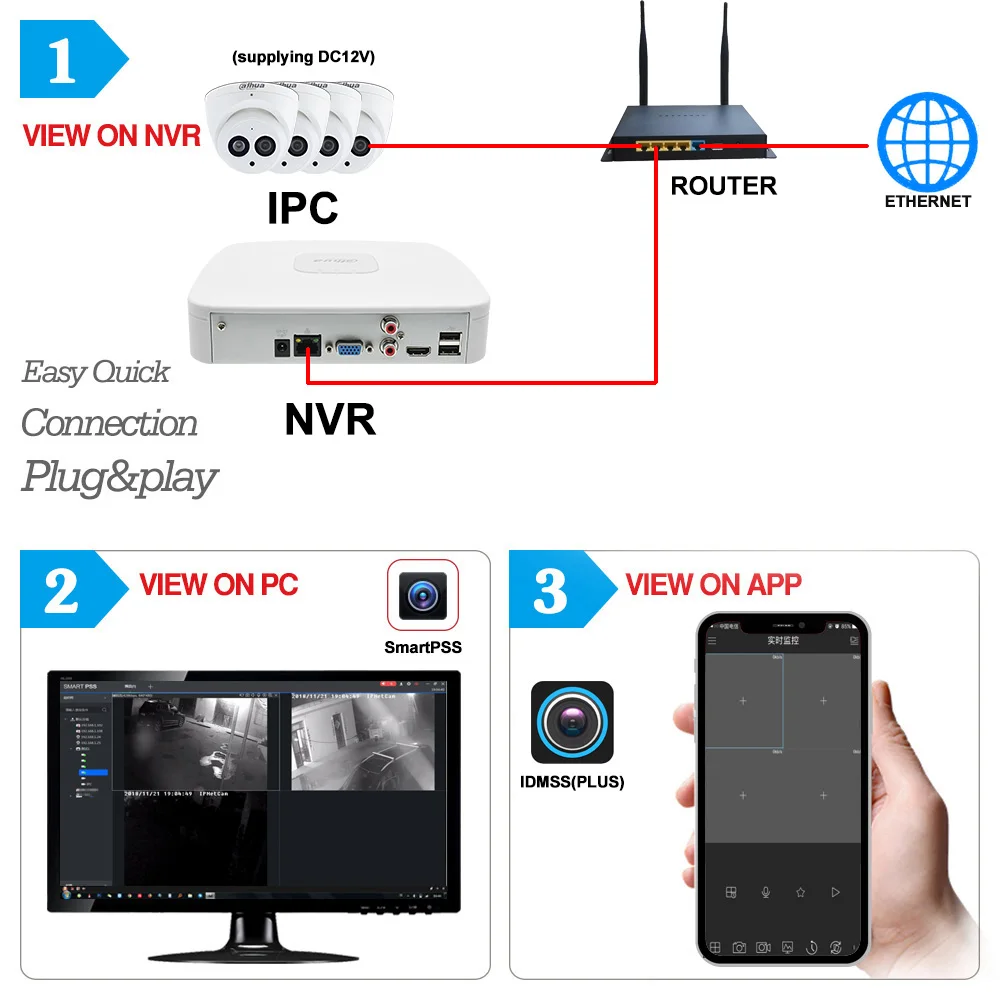 1. Этот комплект поставляется сDahua (Китай) оригиналСетевой видеорегистратор vedio, он поддерживает множество видов ip-камер в нашем магазине