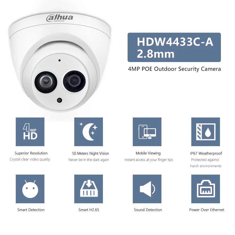 3. Сетевой видеорегистратор Dahua 6MP встроенный микрофон POE IP Камера IPC-HDW4433C-A * 2/ 4;
