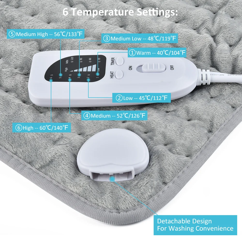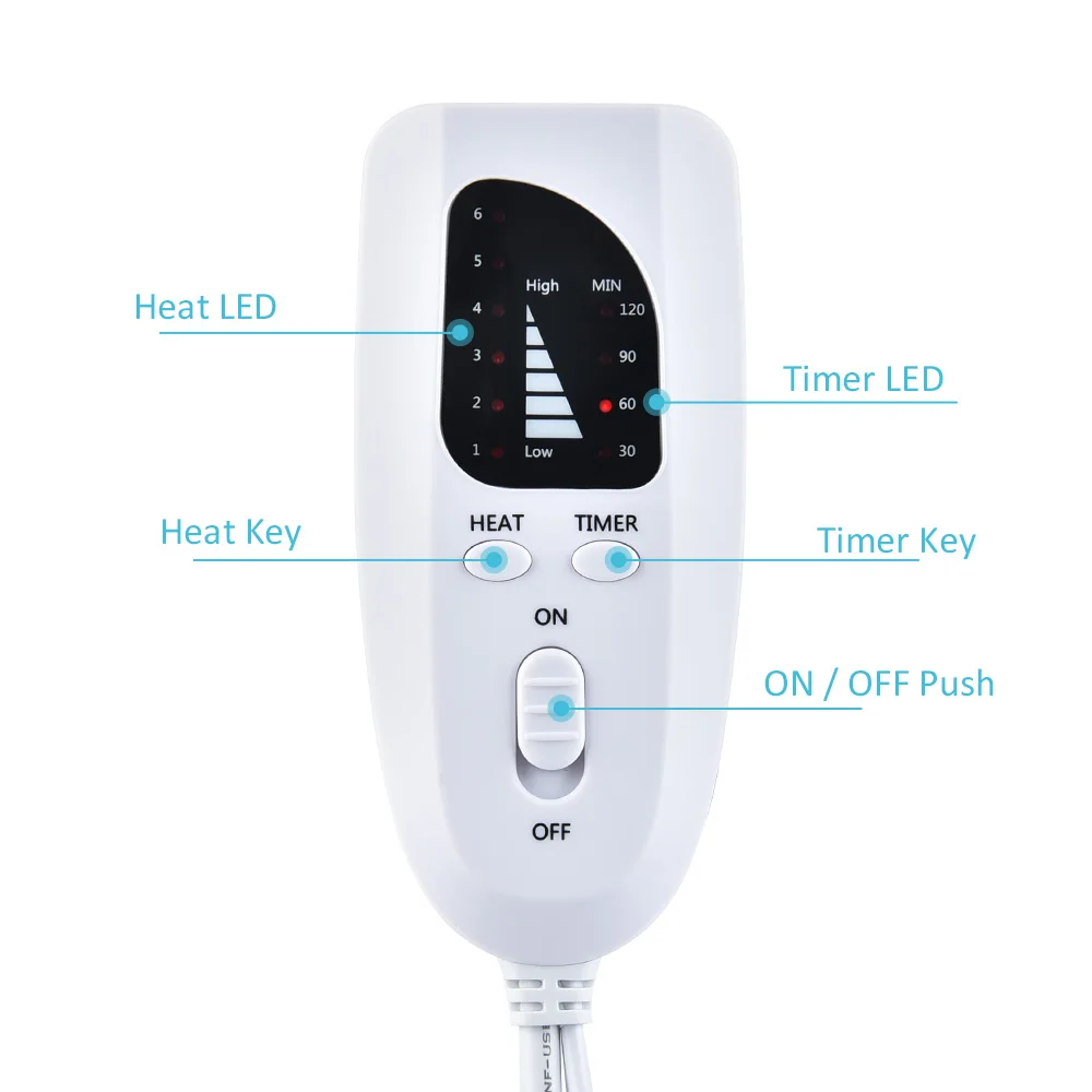 2. [4 настройки таймера] легко регулировать время нагрева между 30 минут и 2 часами через контроллер, и он автоматически отключится как заданный, энергосберегающий и безопасный.
