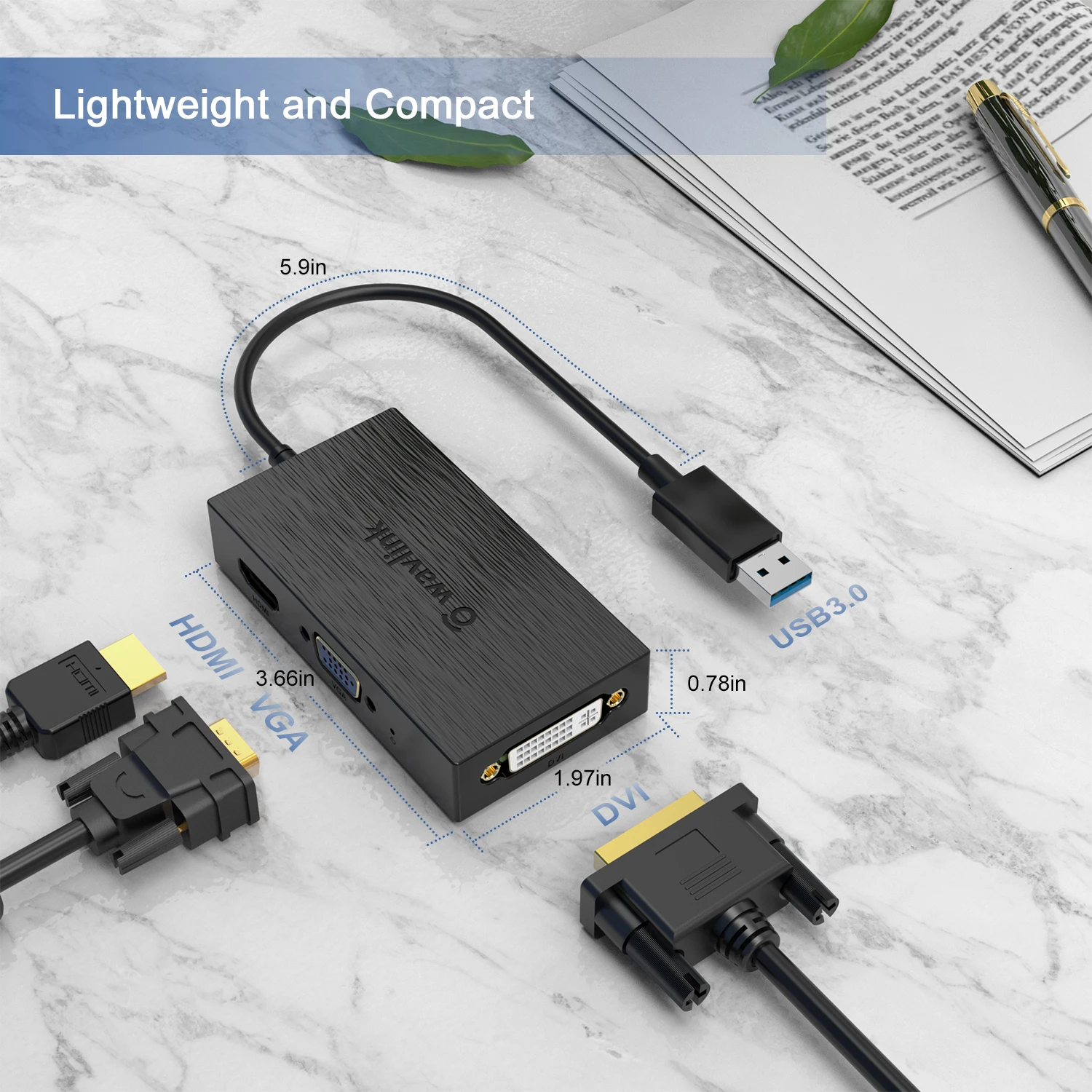 ODM работает как внешняя видеокарта, этот USB3.0 к двойному адаптеру дисплея обеспечивает удобный способ добавить несколько мониторов, таких как проектор, HDTV или монитор. Идеально подходит для домашнего кинотеатра, игр, встреч или презентаций.