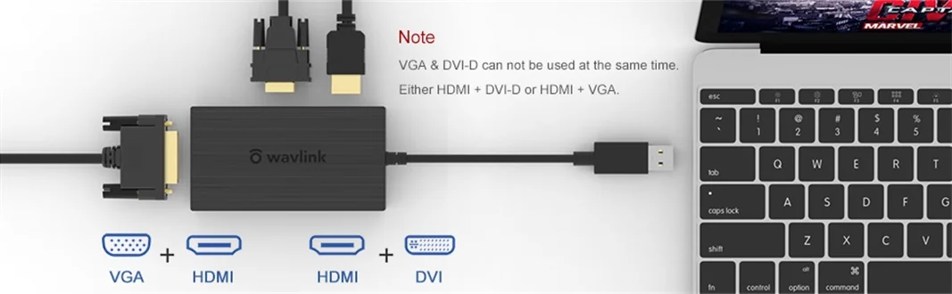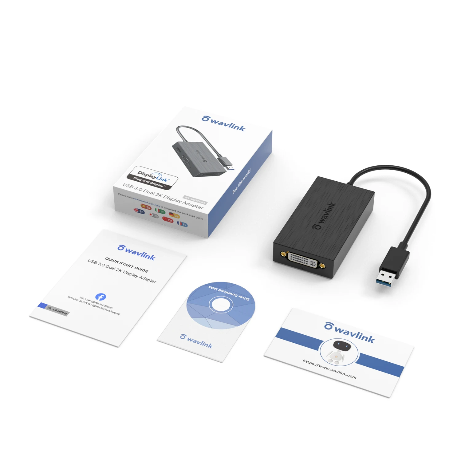 Адаптер дисплея Wavlink USB3.0 для HDMI/ VGA/ DVI Dual 2K
