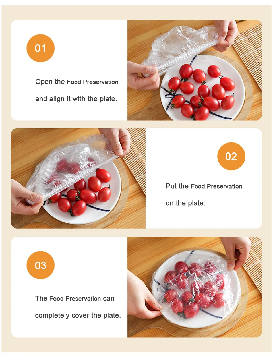4. Правильно завернуть: край каждого тщательно изготовленного прозрачного пищевого покрытия оснащен эластичной лентой с подходящей кривизной, которая может обернуть пластину без чрезмерного напряжения.