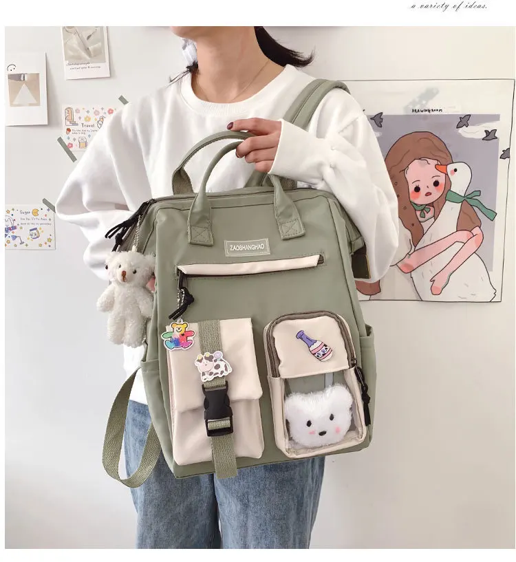 Спецификация: Материал: нейлон + холст Цвет: розовый, зеленый, черный, фиолетовый Размер: 26*18*38 см Вес: 450 г Опишите: Это мощный школьный рюкзак с иерархической структурой и разнообразным дизайном внешнего подряда, который в основном может удовлетворить все ваши потребности. Аксессуары Kawaii могут быть упакованы в разные сумки. Вы также можете повесить ваши любимые булавки, очень красиво. Очень просторный: очень подходит для переноски книг и канцелярских принадлежностей. Широкий плечевой ремень, удобно носить Материал: холст. Тонны карманного хранения. Очень прочный и прочный, но также очень светильник и легко носить с собой. Внутренняя емкость: ноутбуки, IPAD, книги, кошельки, ключевые Чехлы, мобильные телефоны и т. д., большие рюкзаки, подходят для школы, работы, университета, путешествий и других целей. Посылка: Школьная сумка * 1 (прозрачный упаковочный пакет) Размер и вес упаковки: 26*38*2 / 460 г Примечание: Из-за ручного измерения размер продукта может иметь погрешность в 1-3 см, спасибо за понимание.