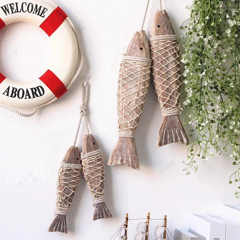 Name: Hand-carved wooden sea fish wall carved in the country coast room decoration