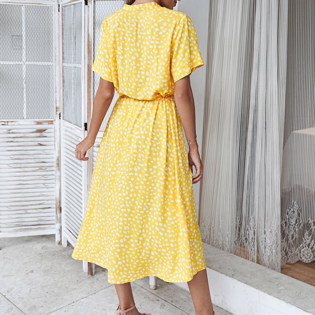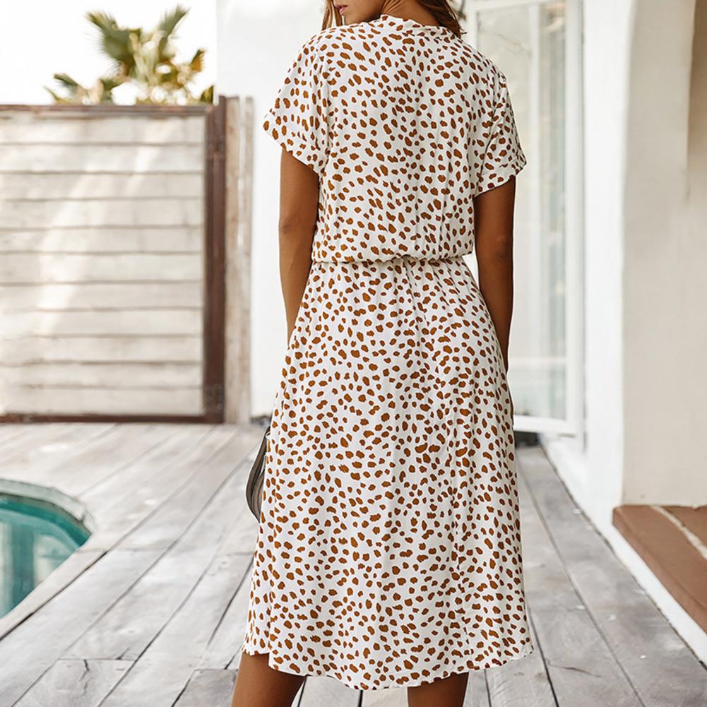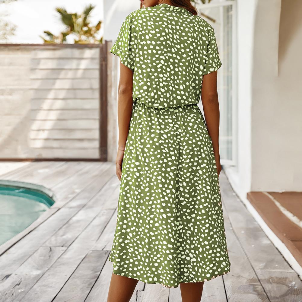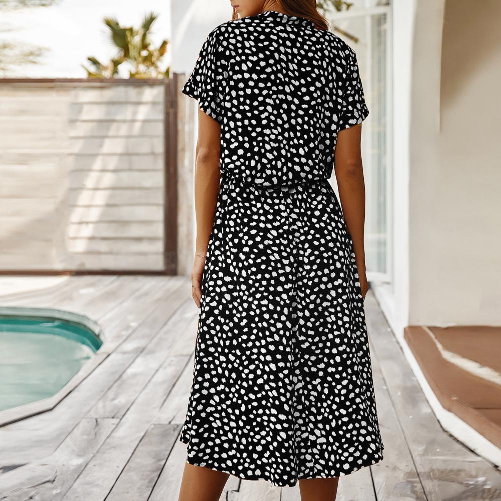 Платье-рубашка Boho с принтом в горошек, свободное женское платье с коротким рукавом на шнуровке и пуговицами для свиданий