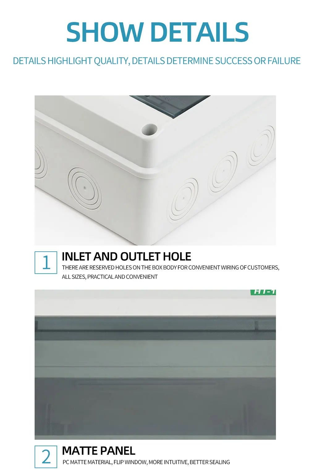 Крышка нажатия открытия и закрытия: крышка распределительного ящика принимает метод нажатия открытия и закрытия, просто нажмите, чтобы открыть маску, И есть шарнирная структура с самоблокирующимся положением, когда она открывается.