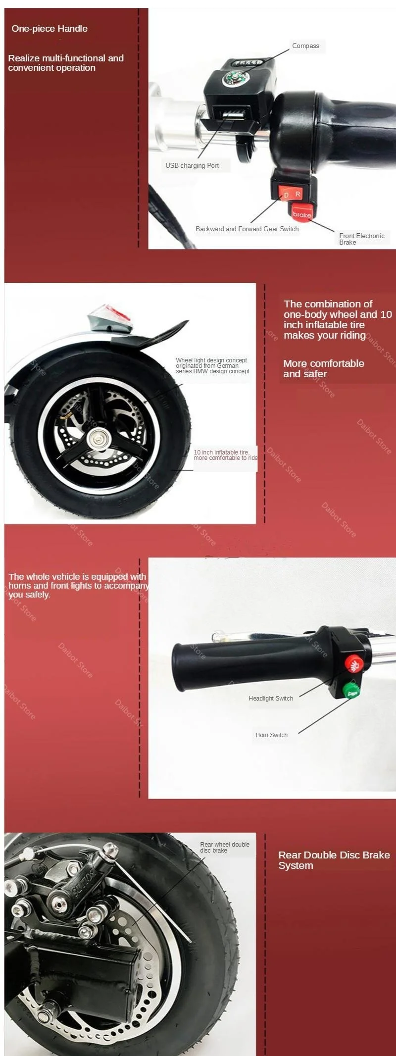 Размер шин:8 дюймов (переднее колесо) 10 дюймов (заднее колесо)