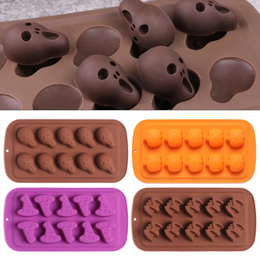 Силиконовая форма для Хэллоуина 10 полостей тыквенный торт шоколадный Декор головы скелета Волшебные шляпы летучие мыши форма для выпечки Инструменты для выпечки