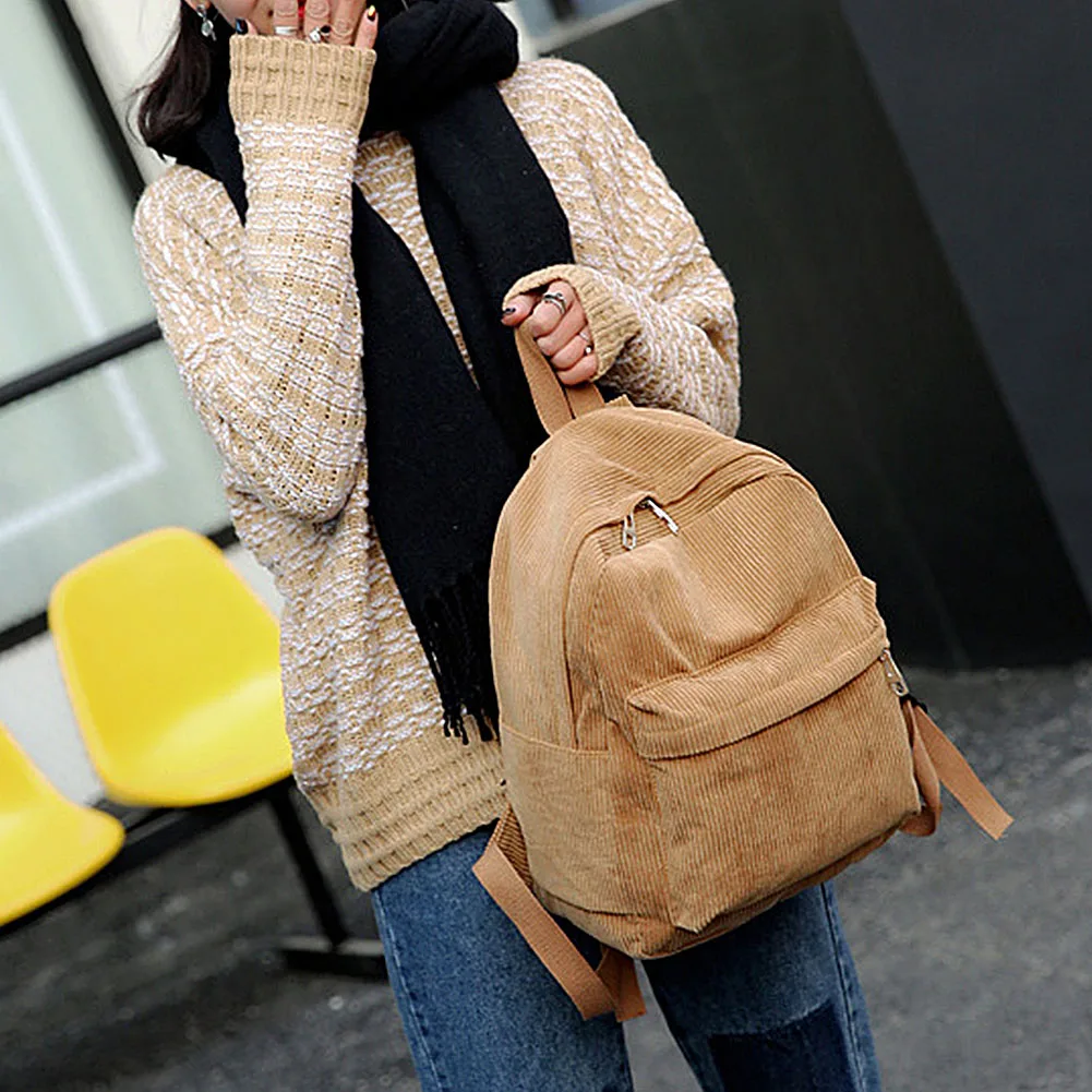 Женский Одноцветный вельветовый рюкзак с карманом на молнии большой емкости для студентов школьный рюкзак