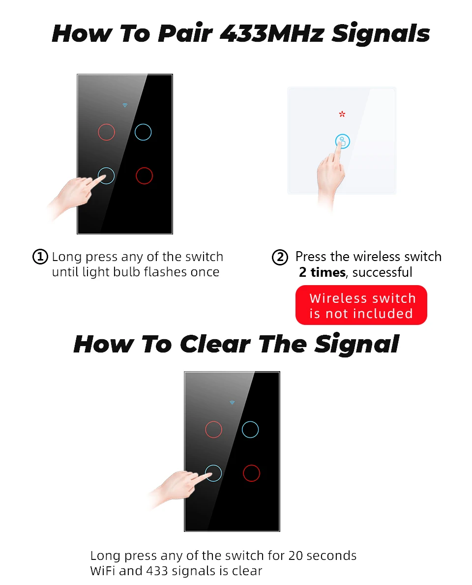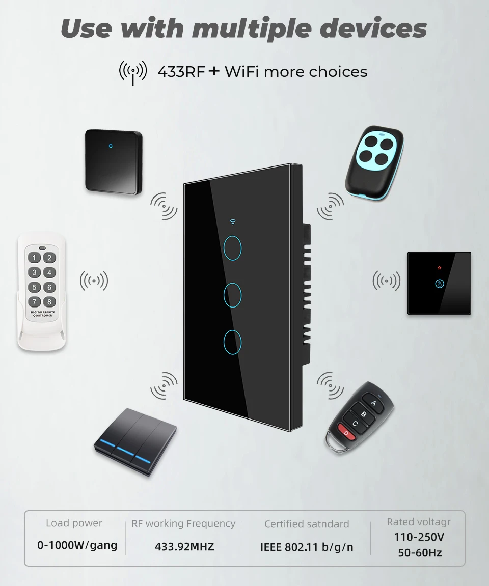 1. Этот умный переключатель можно использовать с радиочастотным передатчиком 433 МГц. Диапазон управления: ≤ 15 м.