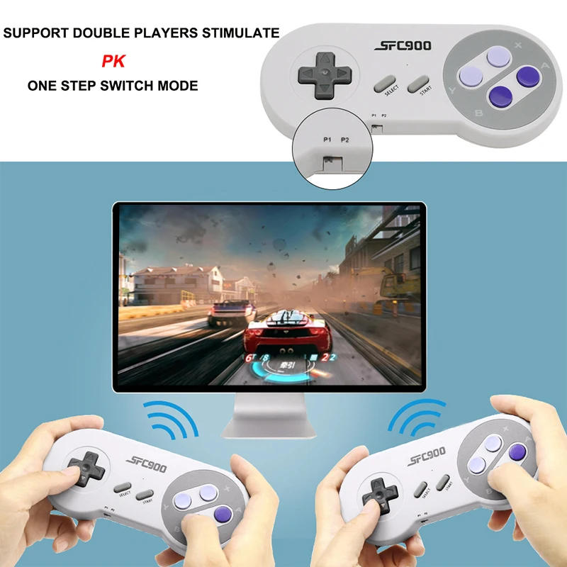 Поставляется с двойным беспроводным контроллером. Поддержка двух игроков. Играйте в ретро-игры с друзьями. Беспроводное расстояние составляет около 7-8 метров.