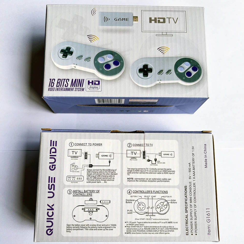 Посылка: игровая приставка HD-1 шт., беспроводной контроллер-2 шт., usb-кабель-1 шт., руководство-1 шт.
