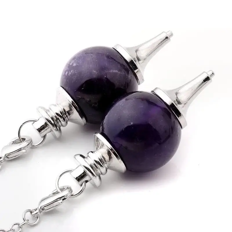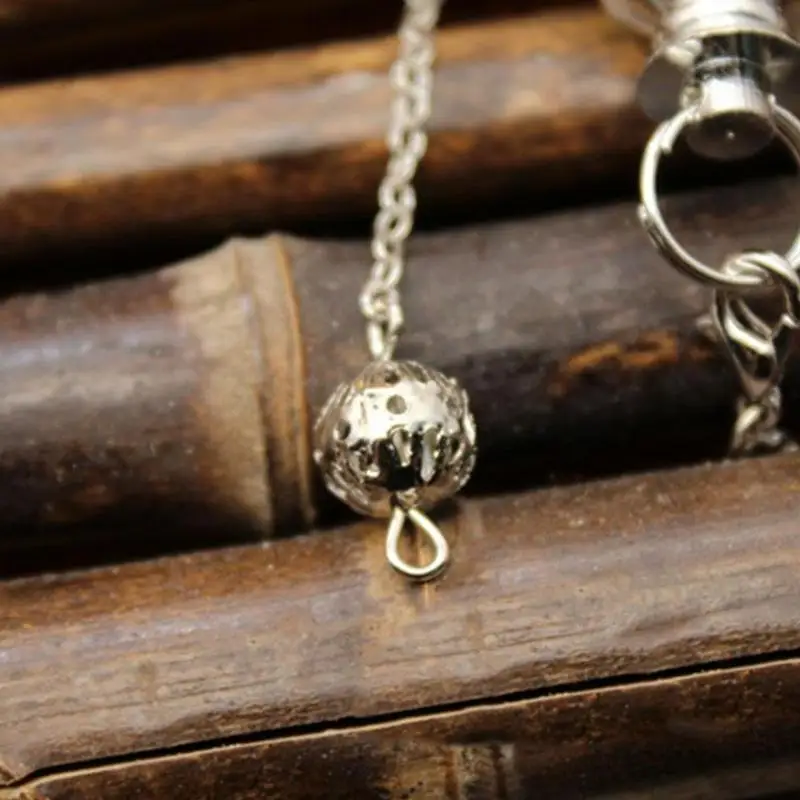 Этот красивый дюбельный маятник изготовлен из натуральной хрустальной сферы, удерживаемой в металлическом креплении серебристого цвета. Маятники измеряют между 40 мм и 50 мм в длину, а также имеют 6 дюймов (150 мм) серебряной цветной цепи с шариком, закрепленным до конца. На фото показаны некоторые примеры товаров, которые мы храним в наличии, это натуральные ручные огранки и полированные кристаллы, которые уникальны по узору и оттенку.