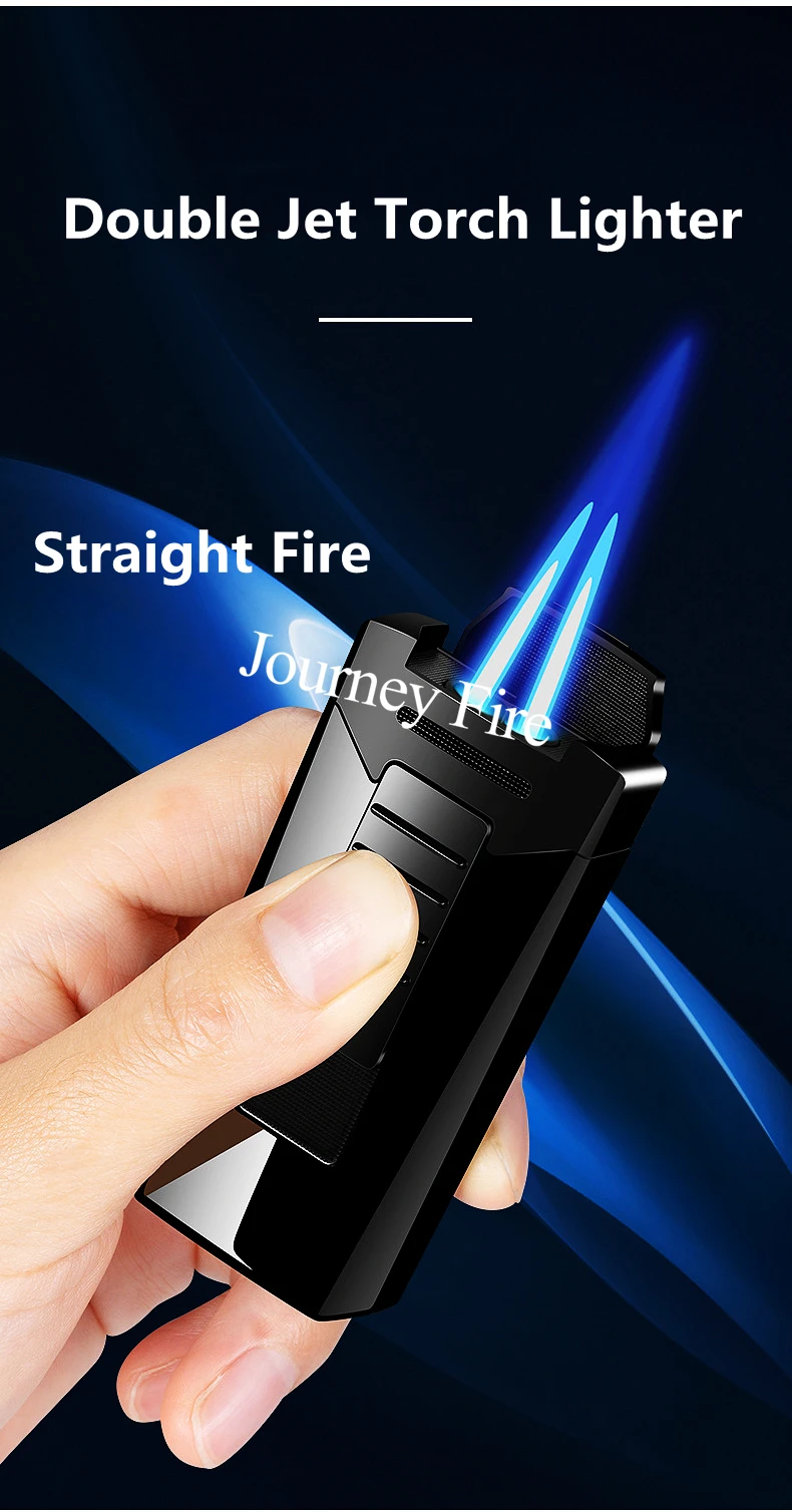 Новая Металлическая ветрозащитная двойная насадка фонарь Зажигалка для сигар Jet Gas бутан надутая Зажигалка для сигарет Подарок Пользовательский рекламный гаджет