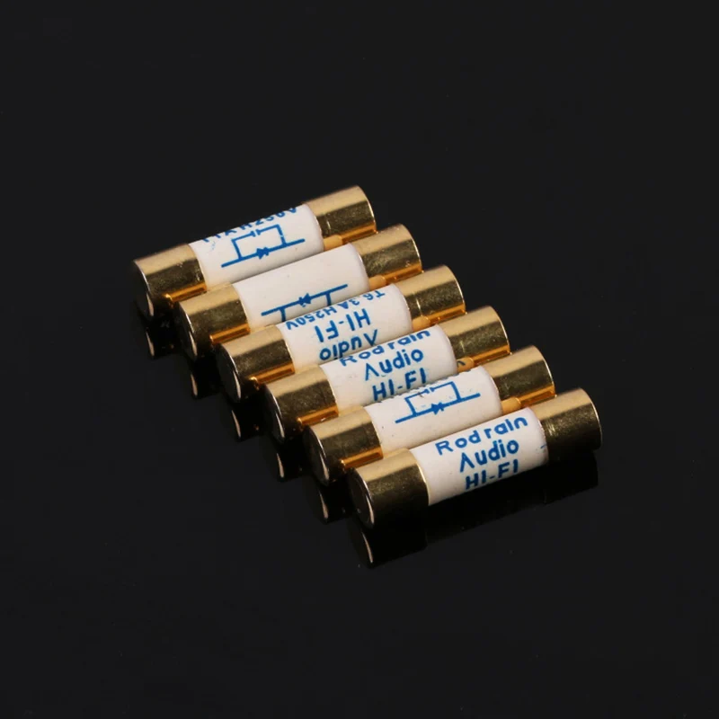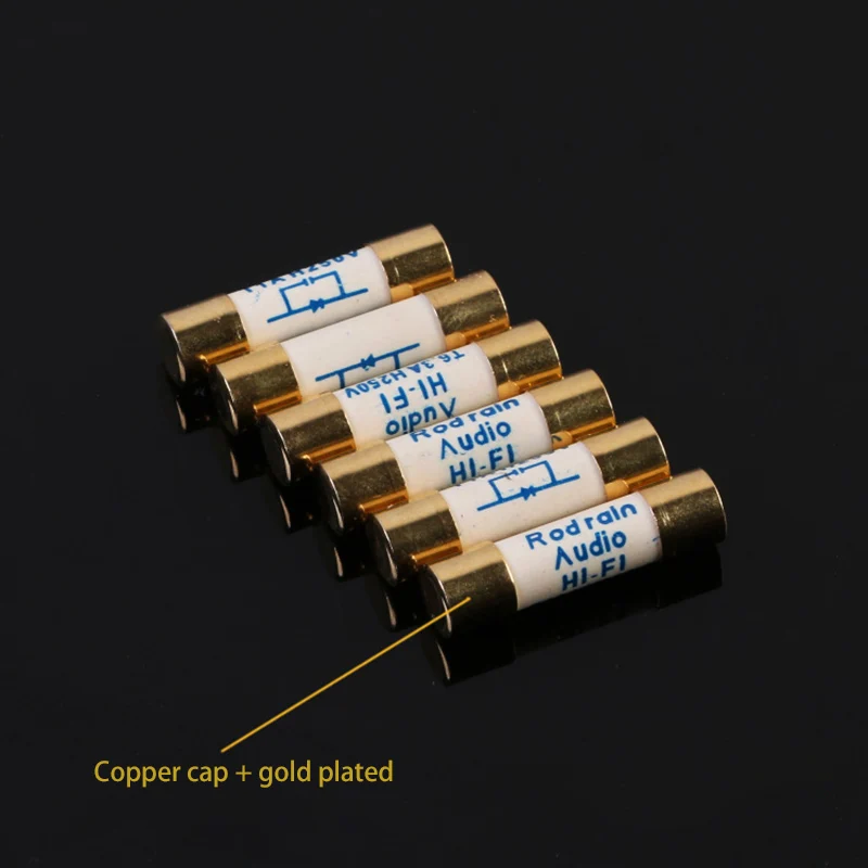 Холодная прессованная 4N медью, большая шляпа покрыта настоящим золотом. Предохранитель прочно обжимается двумя шапками. Процесс производства сложный и может быть сделан только вручную. Этот процесс гарантирует, что предохранитель находится в середине предохранителя, а предохранитель и крышка находятся в хорошем контакте, что может предотвратить эффект микрофона, уменьшить колебание, когда ток проходит, сделайте ток более чистым, и изображение более стабильным. Сравните более дешевые Стеклянные Предохранители на рынке с лучшей полночастотной реакцией.