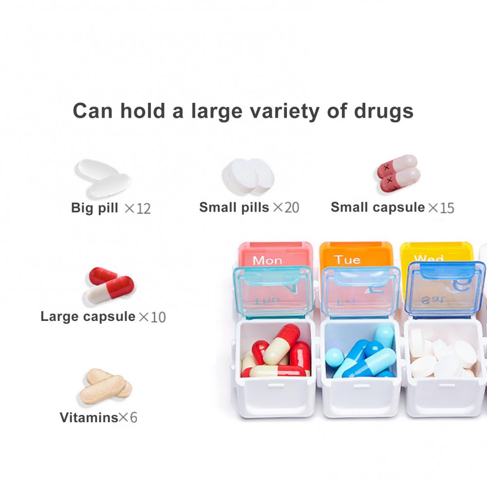 Органайзер для хранения таблеток отличается небольшим размером, большой емкостью, семью большой емкостью, хорошей герметичностью.