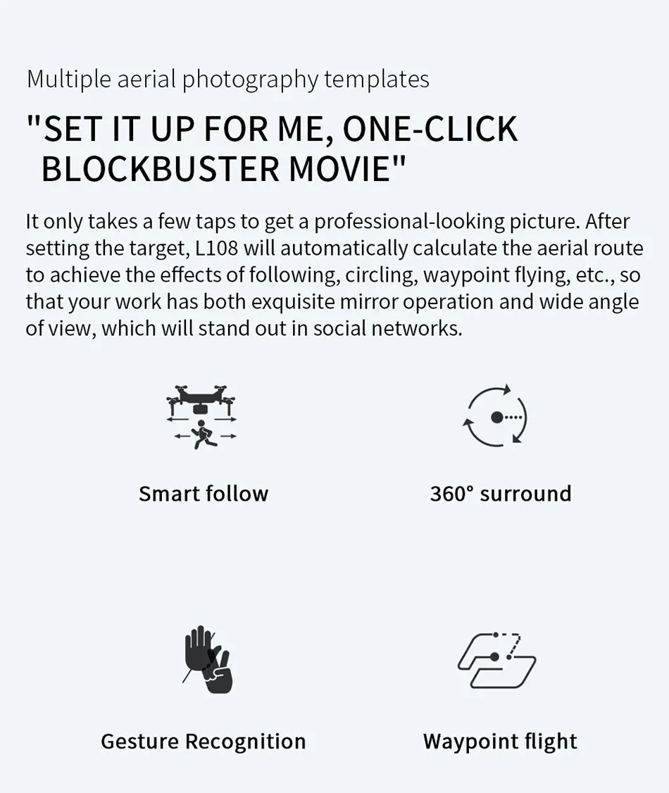 2. GPS smart follow; Далее изображение: Определите предмет и автоматически выполните полет.