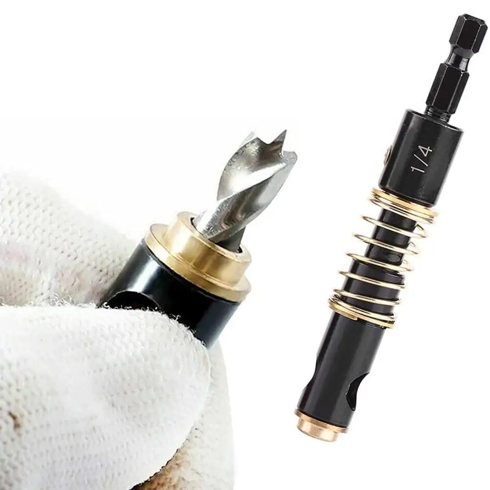 4. Пружинная направляющая центрирует встроенный бит в отверстие дверного шарнира, шарнира шкафа, кронштейна или оборудования, где требуется центральное отверстие.