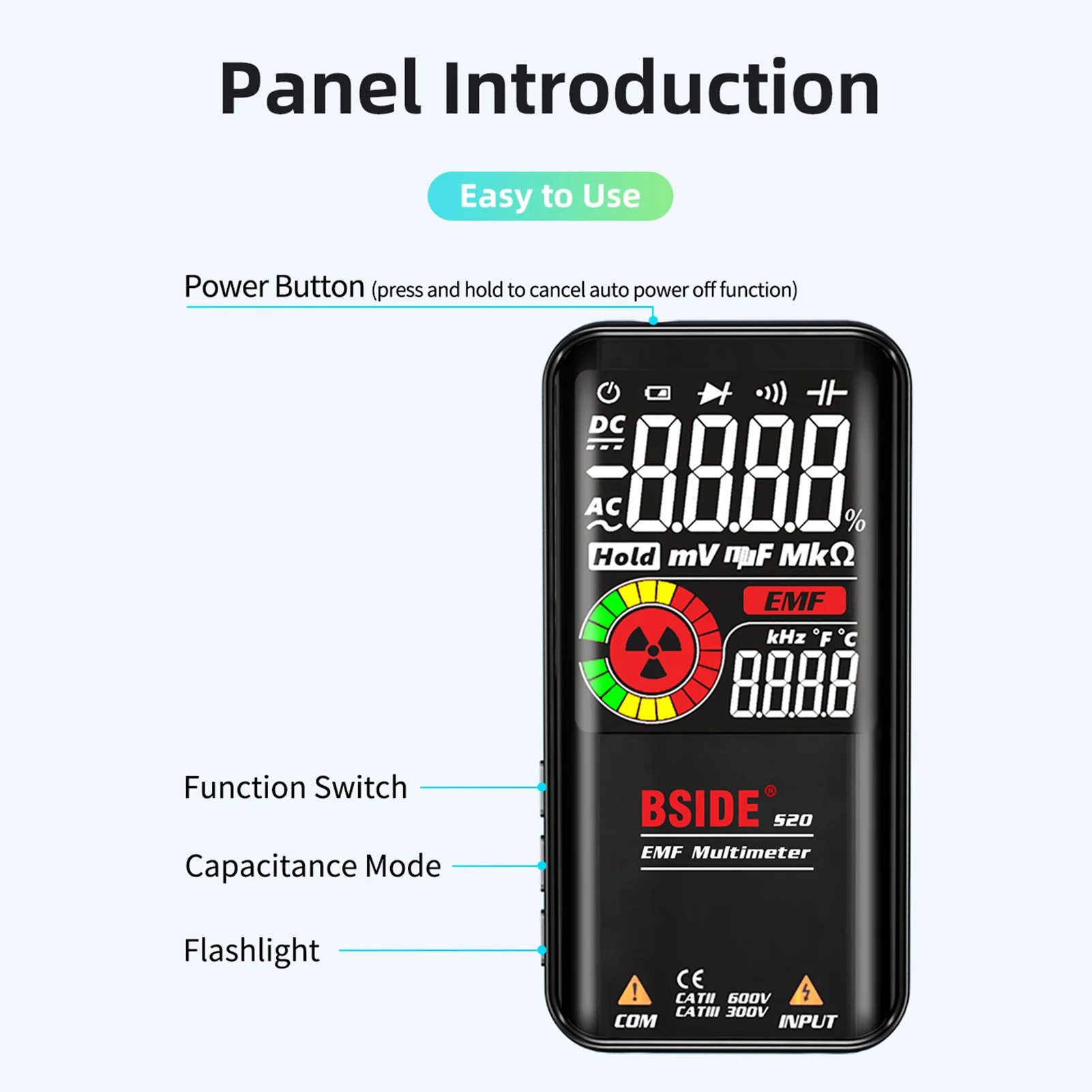 Высокоточный Дисплей: Автоматический диапазон с 9999 счетами смарт-мультиметр с функцией удержания данных, и 3,5-дюймовый большой цветной ЖК-дисплей EBTN значительно улучшает опыт чтения, значение очень легко читать даже под солнцем светильник или плохим светильник.