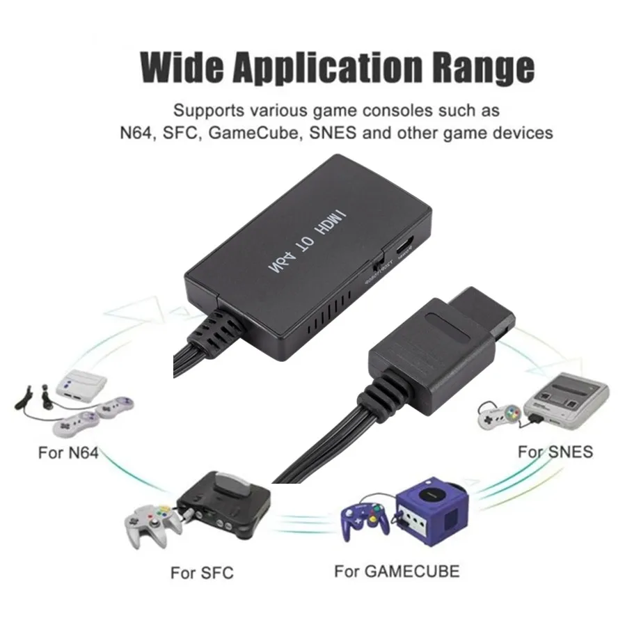 Функция: подключи и играй, Реализуй игровую консоль для N64, для NESS, для NGC и преобразования сигнала в мультимедийный сигнал высокой четкости, совместимый с HDMI, без внешнего источника питания.