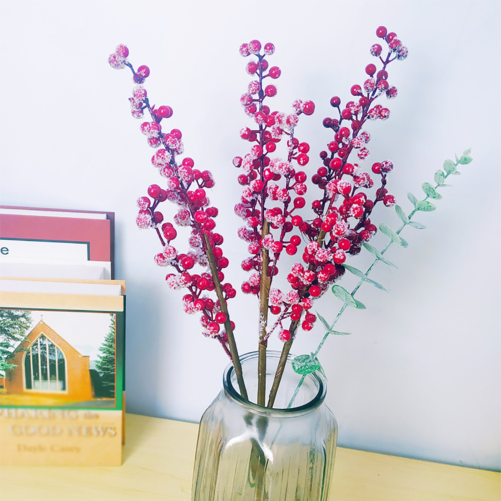 4. Идеальные украшения: матовые красные ягоды, реалистичные и яркие, приносят в комнату жизненную силу и цвет.
