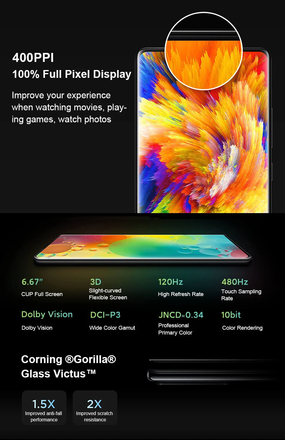 Экран--------6,67 "полноэкранный дисплей чашки, 2400 × 1080 FHD +