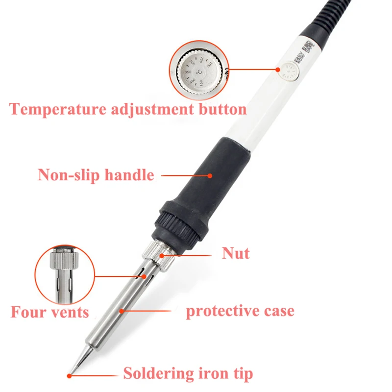 Регулируемый паяльник с контролем температуры: 200-450 °C (электронный сварочный пистолет имеет ручку для регулировки