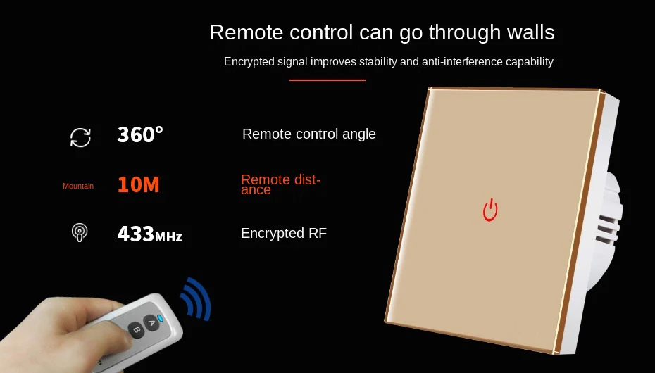 Тип переключателя дистанционного управления: 86 Тип 433 МГц светодиодный индикатор дистанционного управления: Включите светильник красного цвета/выключите светильник синего цвета