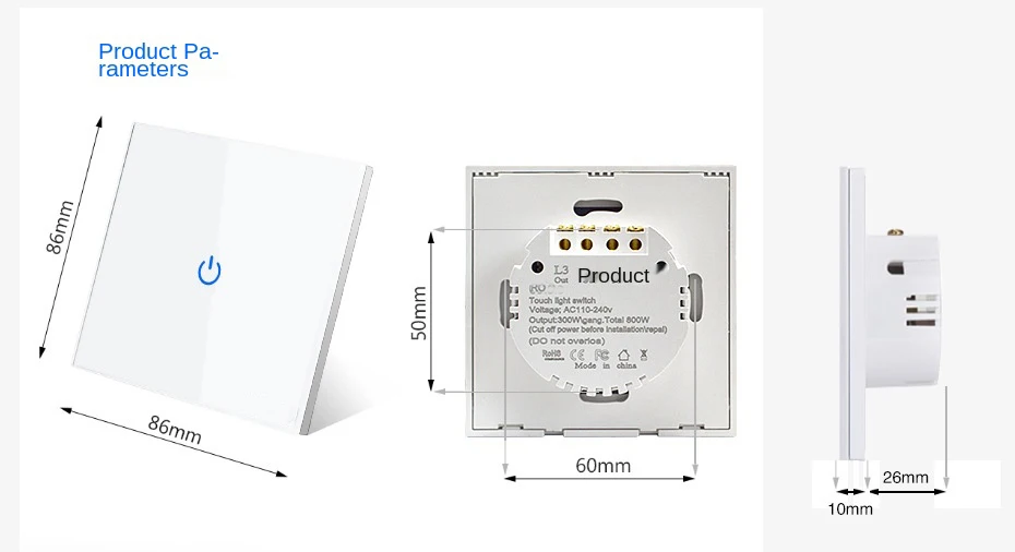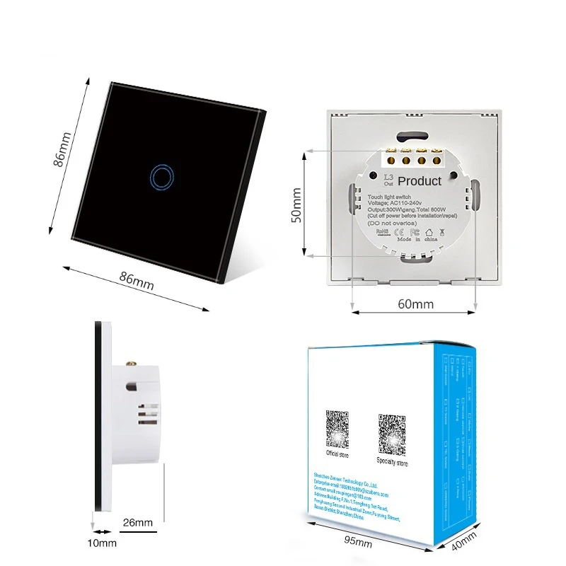 Само-Потребляемая мощность: менее 0,5 Вт Размер продукта: 86*86*35 мм