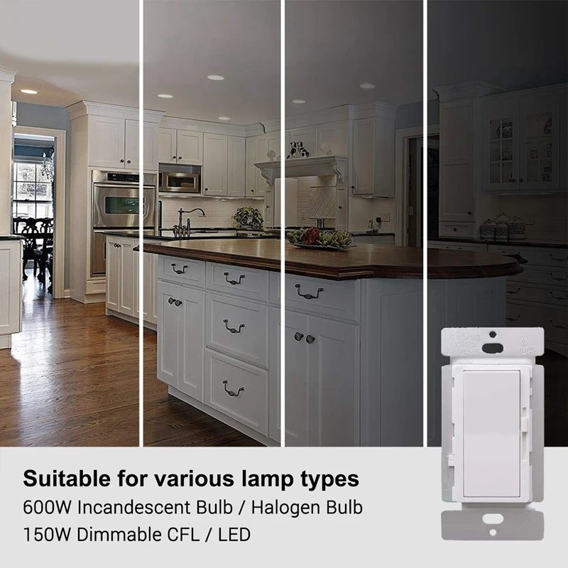 2. Подходит для светодиодов с регулируемой яркостью до 150 Вт, ламп накаливания или галогенных ламп до 600 Вт.