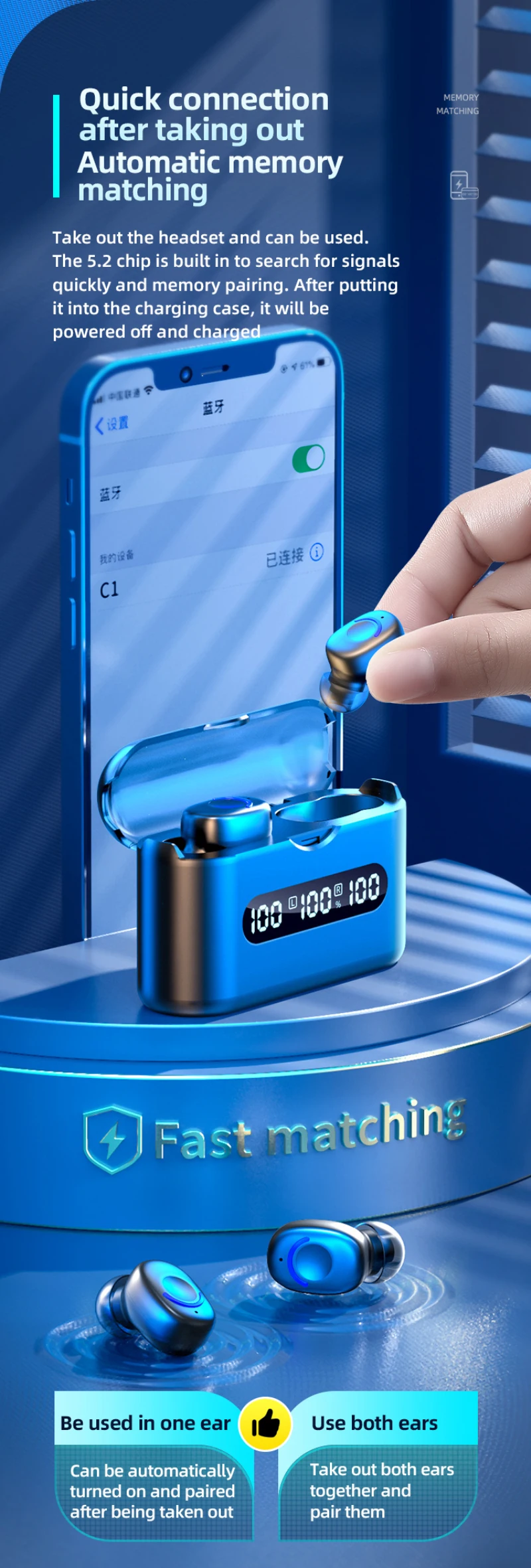 2. Самые последние Bluetooth совместимым 5,2 чип, стабильная передача, время прослушивания песен и играть в игры не застревает.