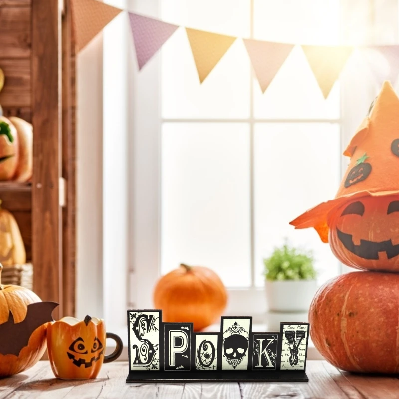 Особенности: Рабочий стол для Хэллоуина, деревянный орнамент для рабочего стола, украшения для Хэллоуина