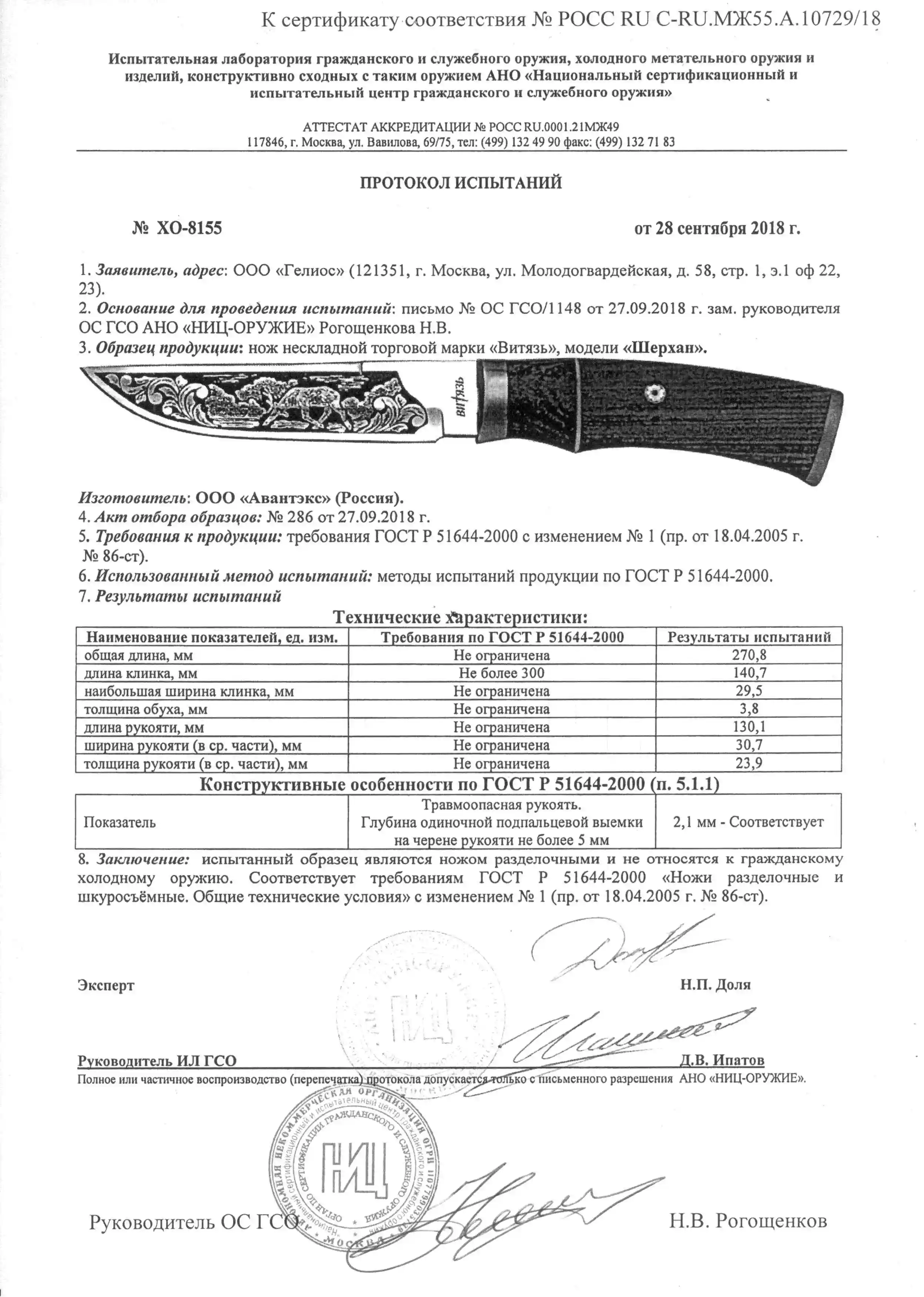 Длина клинка (мм)