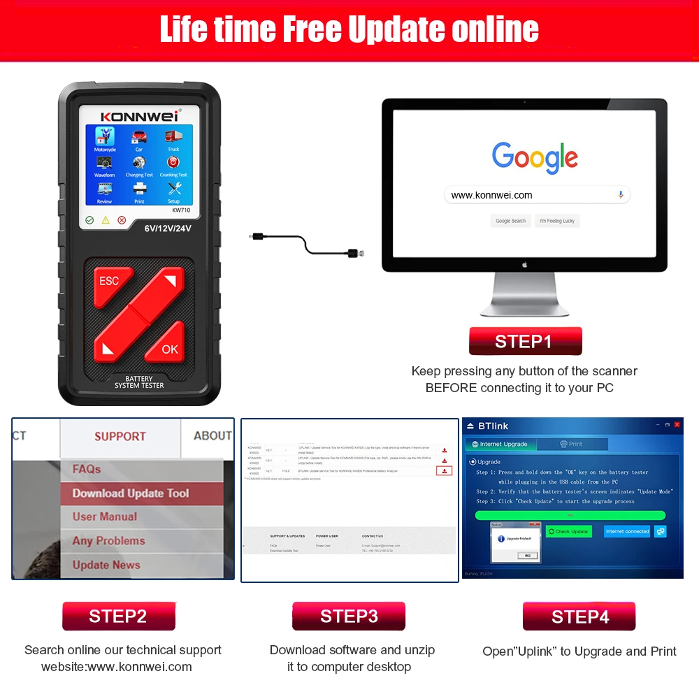 KONNWEI KW710 поддерживает бесплатное обновление и печать по BTLINK в течение всего срока службы.