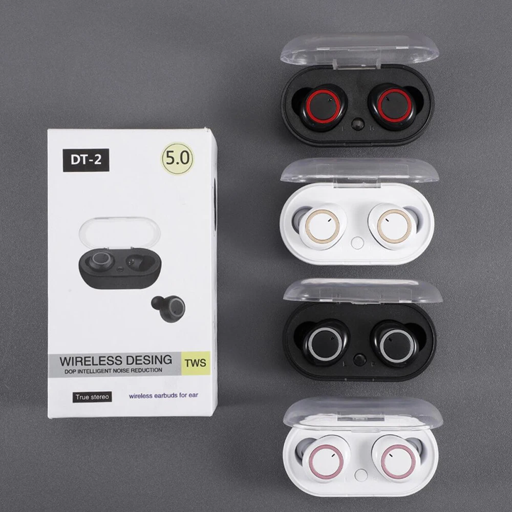 Stereo Wireless Earbuds HFP/A2DP Bluetooth 5.0 Outdoor Sports DT-2 TWS Headset Touch Control Earphone Handsfree With Microphone