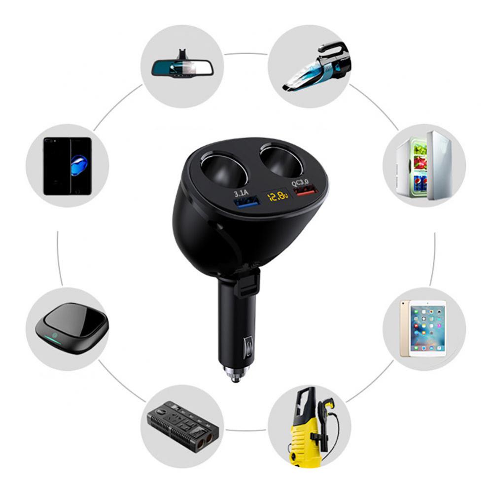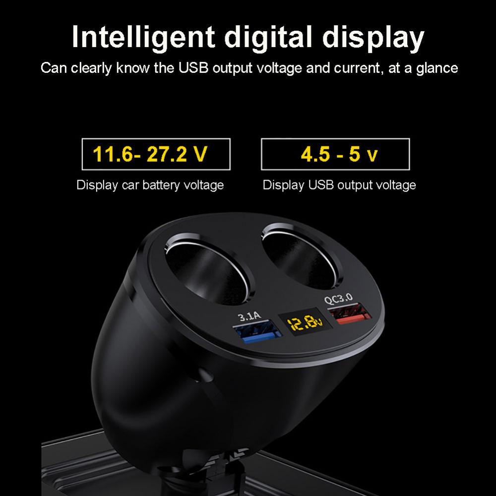 Дисплей напряжения двойной USB порт 2 C-igarette Зажигалка розетки QC3.0 автомобильное зарядное устройство