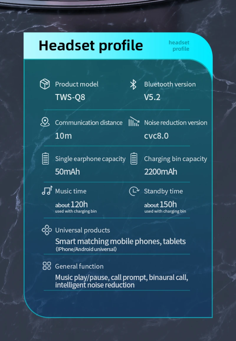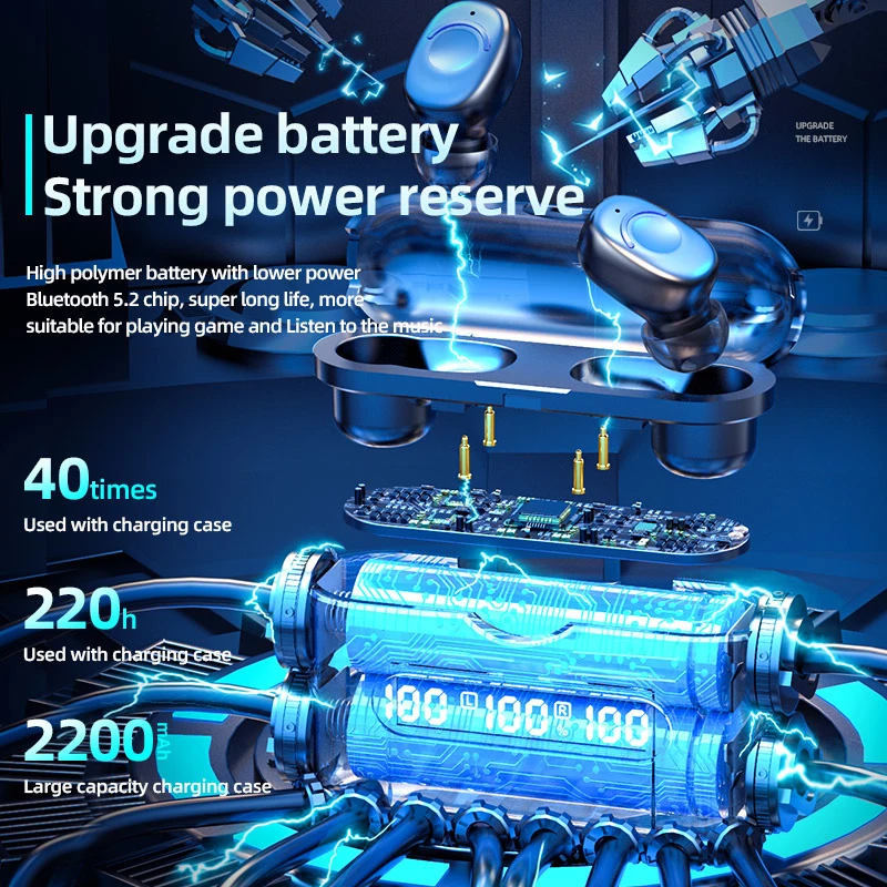 2. Новейший чип 5,2, совместимый с Bluetooth, стабильная передача, прослушивание песен и игры не застревают.
