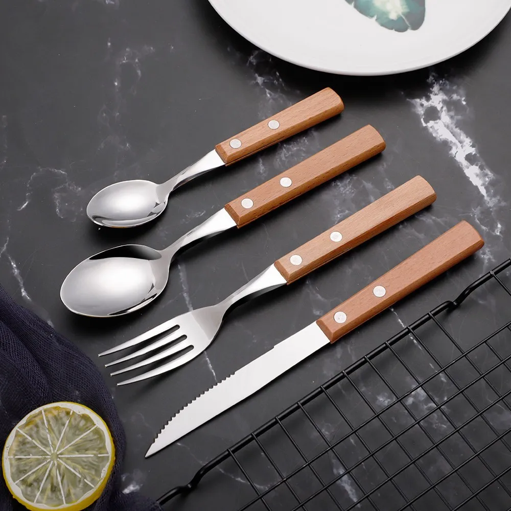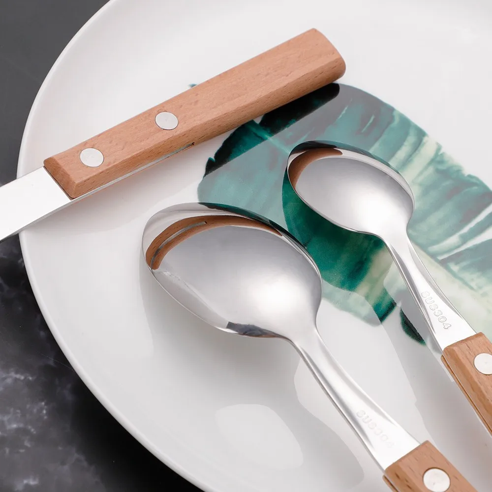 Набор серебряных изделий, кухонная посуда, столовые приборы из нержавеющей стали, набор ложек с деревянной ручкой, набор ножей, столовый набор, столовая посуда