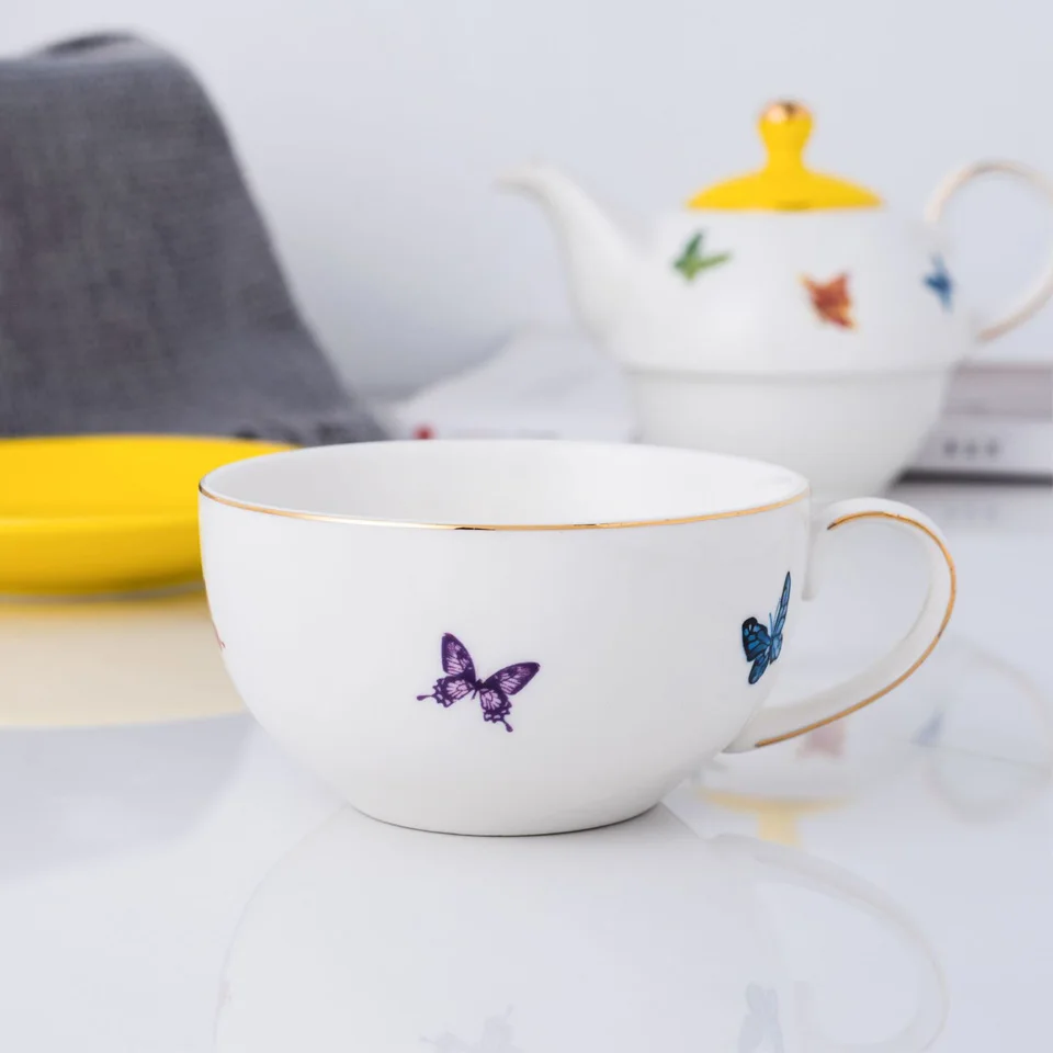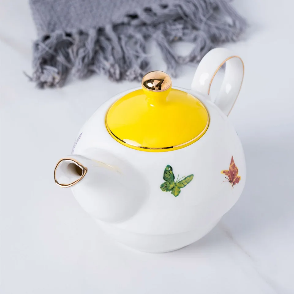 BORREY керамический цветочный чайный горшок, чайная чашка, блюдце, офисный послеобеденный чай, кофейная чашка, блюдо, набор друзей, семейные подарки, желтый чайник бабочка, чайный горшок